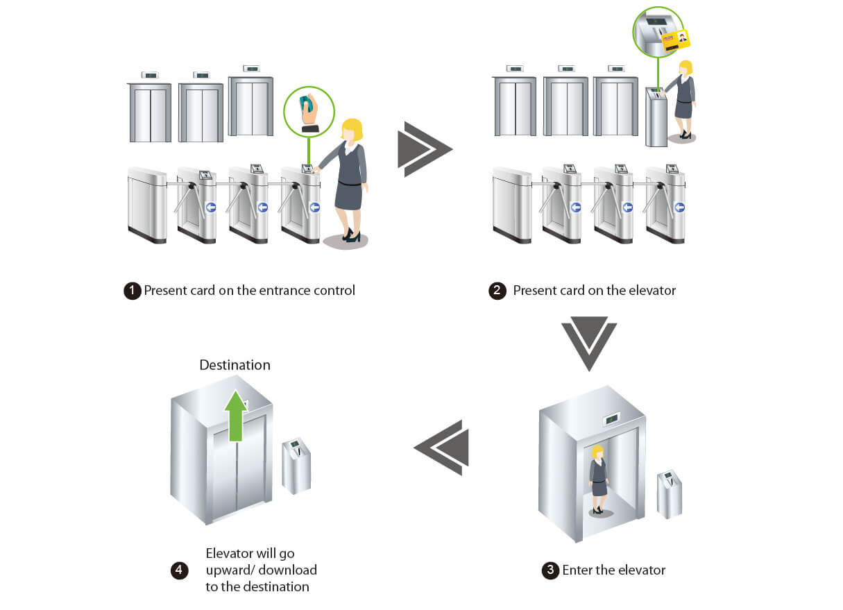 By integrating our turnstile solutions with our normal and destination based dispatching elevator control system, you will benefit from consistent design, flexible personalisation features, and enhanced comfort for visitors and tenants.
