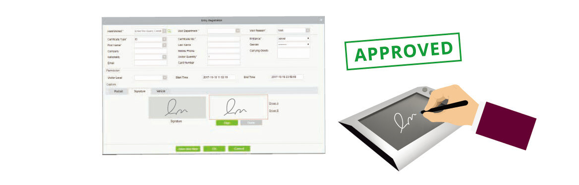 Supports Connection to Signature Pad and Auto-Acquisition of Visitors’ Signature