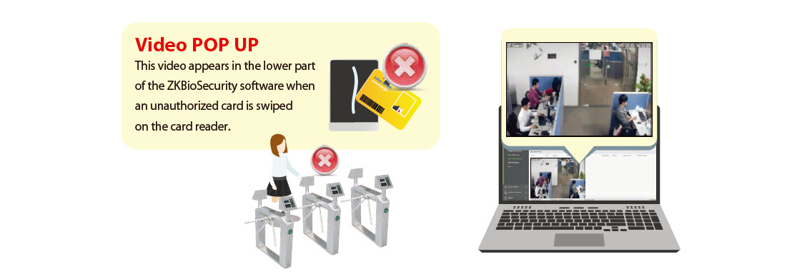 The security linkage system comprises a video monitoring system, when there is an exceptional event, including a swiping of an unauthorized card on the card reader, monitoring video will pop up to warn administrator. Video length could be up to 180 seconds.