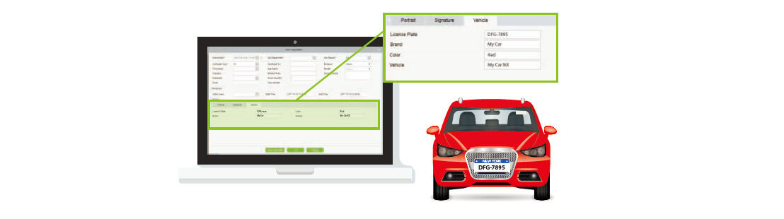 During visitor registration, it supports registration of visitor car information including brand, license plate, colour and model etc.