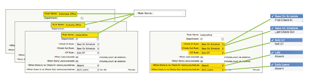 Biotime 7.0 is a powerful time attendance software which can setup various attendane rules which is applicable for the whole company and individual departments. User can set the attendance parameter like check-in, check out, and overtime rules.