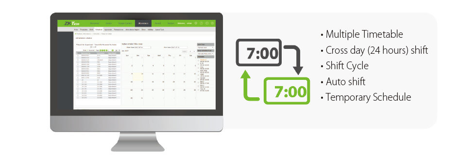 Software administrator can assign flexible schedule which support cross-day timing to the employees.