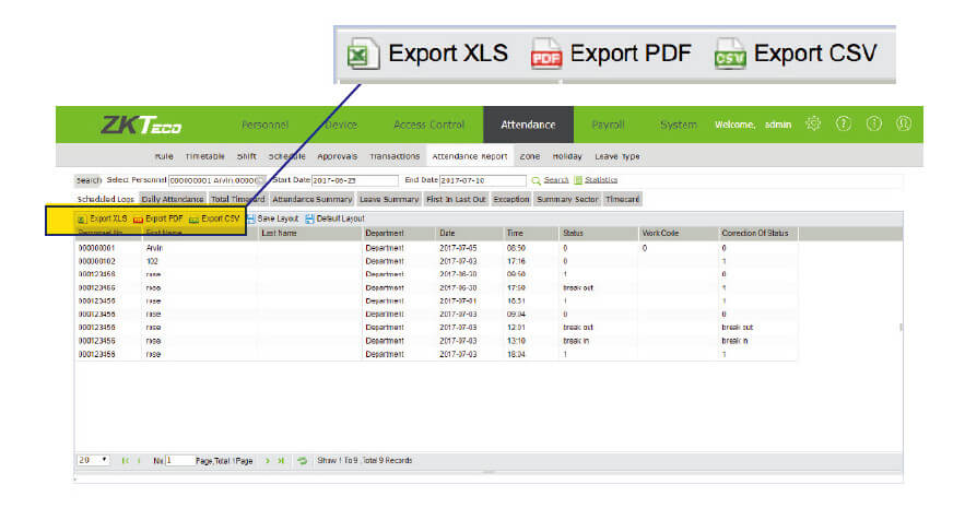 The attendance reports are calculated easily and can be exported in CSV, PDF, and XLS format.